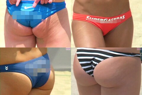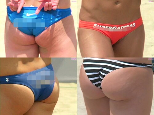 ド迫力のプレーとお尻が砂のコートに舞います。