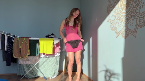 服を身に着け、どのショーツが似合うか選んでくれとパパの