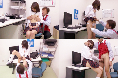 ショートカットや黒髪ロングヘアーが似合うブレザー制服姿の可愛い女子学生達は若気の至りで店の商品をカバンに入れてコッソリ持ち帰ろうとしたのを一番捕まってはいけない悪い大人に見つかってしまう。悪徳店長は証拠写真を撮影し「色んな所に通報するから、受験もできなくなっちゃうねー、まだ何か服の中に隠してるだろ?脱いで」女の子の制服を脱がせたいだけなのに身体検査を理由にして逆らえないよう誘導していく。ブラウスのボタンを外せばそこにはブラジャーに包まれた巨乳が。スカートもめくり上げパンティを観察。下着の次はそれに覆われるものに興味を示す男。下着を剥ぎ取り巨乳を揉みまくり、パンティを脱がせばパイパンオマンコに興奮。足を開脚させオマンコを刺激。恥ずかしくて嫌がっても敏感ボディは反応してしまいオマンコからマン汁の音をクチクチとさせてしまう女子学生。エッチなオマンコになったのを見て我慢できなくなった悪徳店長は手コキやフェラ奉仕を命じ、ビンビンの極太チンコをヌレヌレオマンコに生挿入し大量中出し。