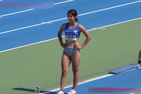 レーシングブルマを身に着け、鍛え上げられた身体と細い四肢。