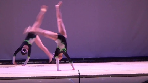 いつものレオタードを身に包み、壇上で床競技やチアダンスの