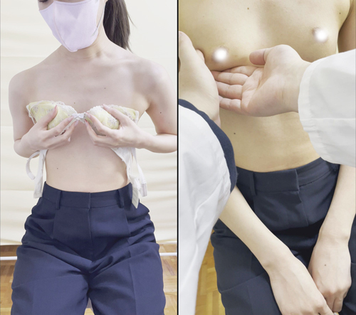 【一般外来】「揉み癖」のある美人主婦と女大生ちっぱいチャン。2人の尖がった乳首が印象的です。