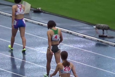 レース前後にブルマの食い込みを直したり、はみ出たお尻や