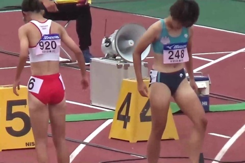 レース前後にブルマの食い込みを直したり、はみ出たお尻や