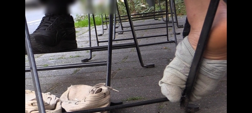 靴下が汚れている女の子の靴脱ぎ