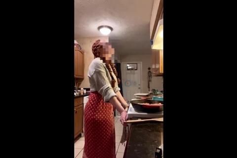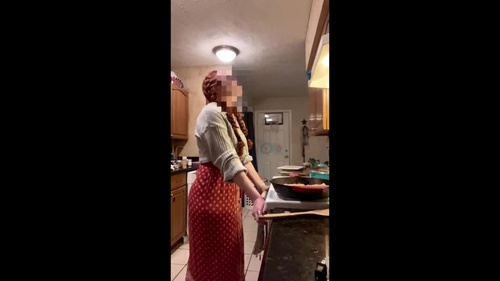 自撮りでキッチンで料理するシーンを撮影していますがこの