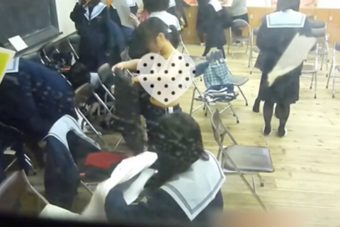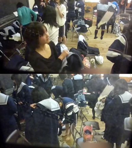 吹奏楽部のJKさんたちがジャージから制服に着替えています。