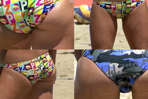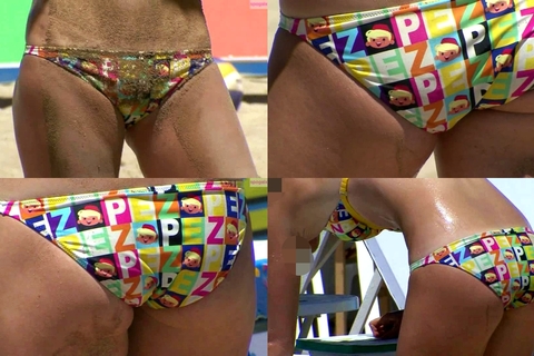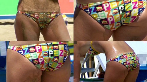 ビキニのズレやクイコミが大胆です。
