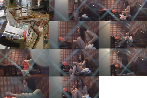 「1時間で」と言って店員とやり取りする彼女を追いかけます。そして、部屋番号を盗み聞きしたぼくは、自分も1時間で部屋を取ったあと、自分の部屋へは行かず、そのまま彼女の部屋前まで直行。案の定、察した通り彼女は入室後、デンモクも持たずさきほど買った下着を開けはじめていました。
