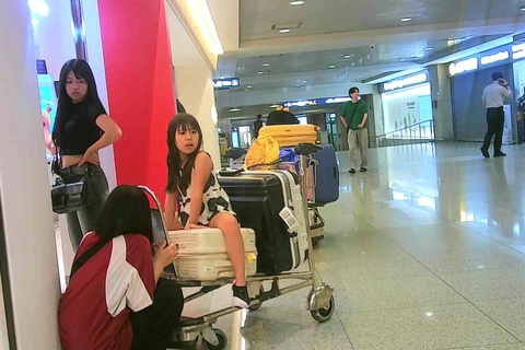 大股開きでカートに乗るS
