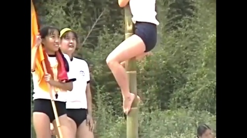 ブルマを履いたJC達がカエルのように股を開きつつ登っていく姿が