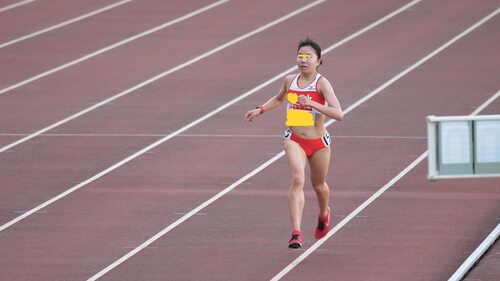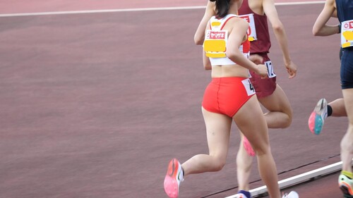 ブルマ選手は走ることで、筋が微妙に強調されてきます。
