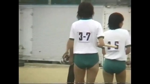 ブルマを履いた女子高生が体育祭のリレー競技に挑戦する姿を記録しています。