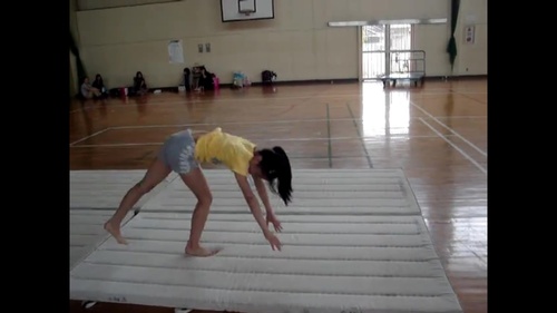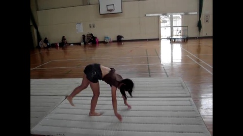 女子小学生 後方倒立回転 練習中