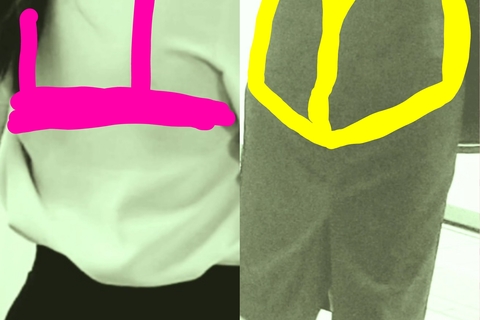 真横、真後ろ、お尻形くっきり、パンテ◯ライン無し?