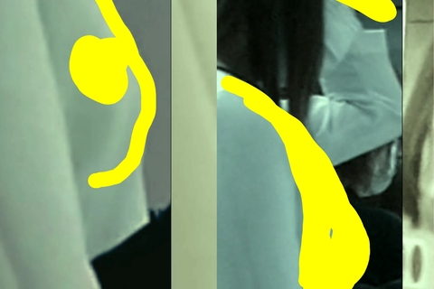 何?やはり駄目か?では、あ~して、こ~して、、おお?やはり、何やらラインが浮き彫り、、これは、生理◯パンティ、、