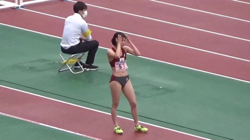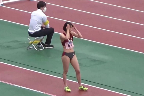 レース前後にブルマの食い込みを直したり、はみ出たお尻に貧乳の