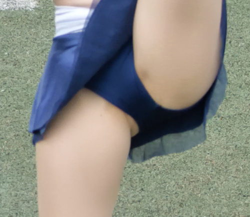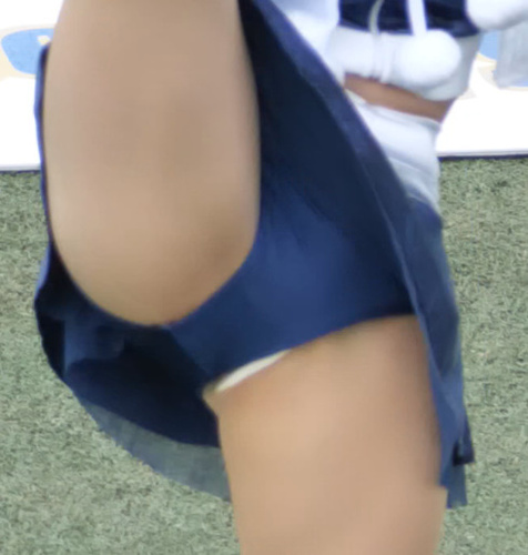 白パンはみる人気チア!ブルーでハイキック!
