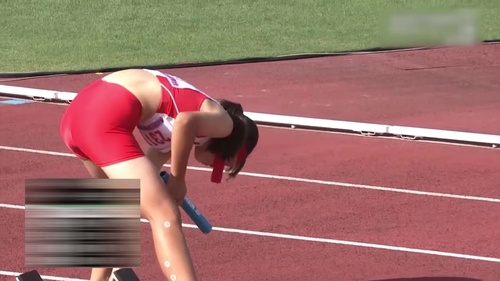 レーシングブルマやスパッツを履いた女子中学生が400mリレー決勝戦に臨みます。