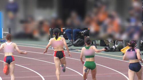 ハードル走のレース前からゴール後までを収録しています。