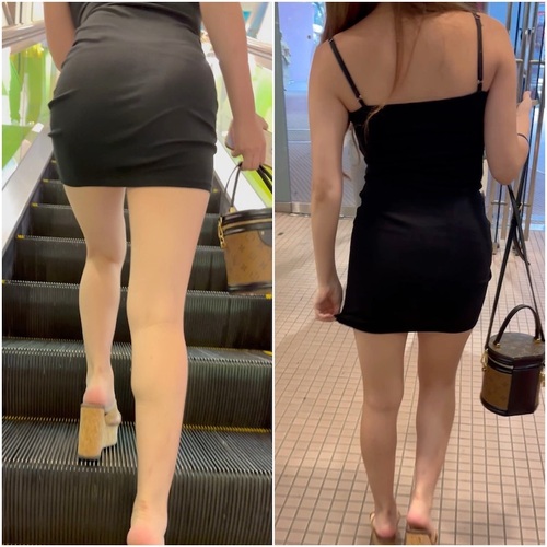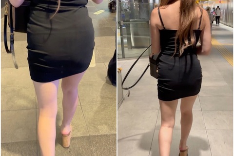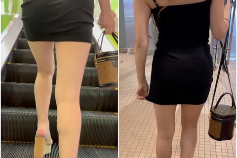 露出度が高いミニ丈ワンピースのモデル。