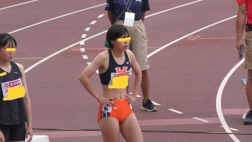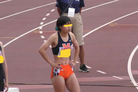 ハードルを越えるため、こころなしかレーシングウエアの食い込みも激しいようです。