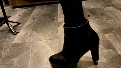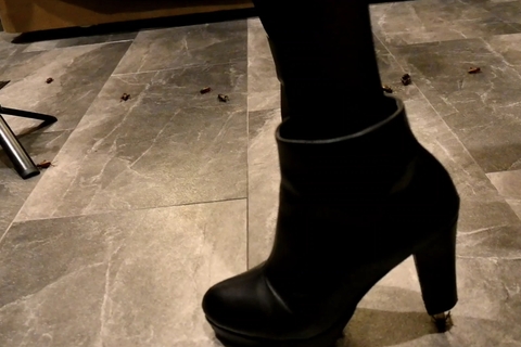 美人S女さんのブーツでコオロギ大量虐殺