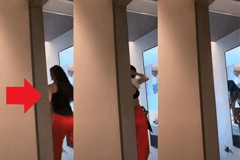 と思っていたら完全に隠れきれずに自分の姿が映ってしまい下着や肌が露わに。