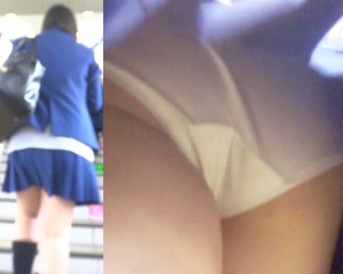 すると彼女は駅の改札へ向かう上り階段の方へ向かっていきました。この階段は絶好のチャンスです。ここでモノにしてやろうと彼女の背中に接近します。そして彼女が階段に足をかけたところでスカートの中へカメラを差し込みました。彼女はスカートの裾を気にすることなくどんどん階段を上っていきます。そこでこちらもどんどんスカートの奥へとカメラを忍び込ませていきます。そして彼女が階段を上り終わるところでは、もう完全にカメラがスカートの奥へ入り込み、パンツに超接近して撮影してやりました。