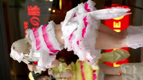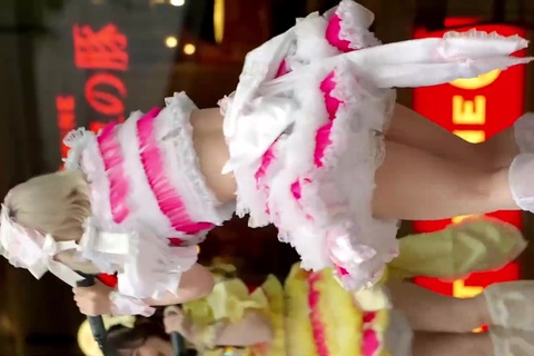 ふとももを強調するふりふり衣装でダンスを魅せてくれるアイドル ローアングル撮影