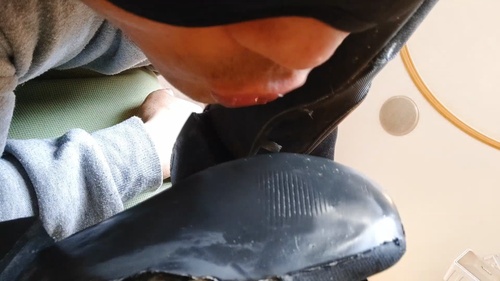 かかとからつま先まで全部舐めさせ、靴裏全体は唾液でびしょびしょに。