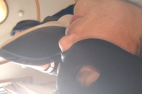 ペタンコのパンプスなので顔面も踏みやすそうで、靴底も綺麗にたっぷり舐めさせています、かかとからつま先まで靴を動かしてM男の口の中へ、その靴底からのアングルは女性が舐めさせながら自分で撮っているので臨場感たっぷりです。
