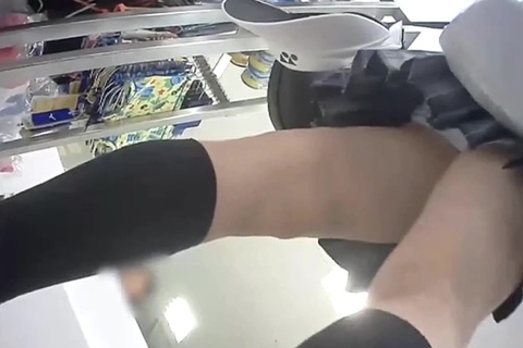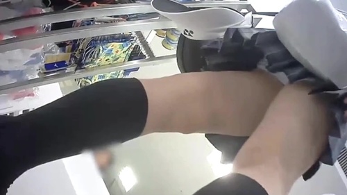 靴を買いに来た女の子とスクール水着を買いに来た女の子のパンチラ。