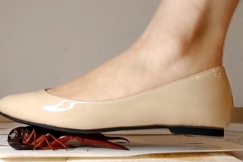 今度は白のペタンコパンプスでザリガニ踏み潰し、同じ部屋でスーツで踏み潰しています。