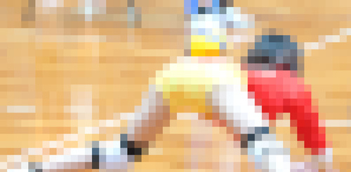 飛んで来たボールを受ける為、前のめりに四つん這い、からの大開脚。