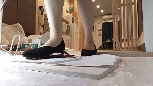 今度はスーツ姿のあみちゃん登場、使用感たっぷりの、普段履きパンプスでまず1匹を無造作に踏み潰す。