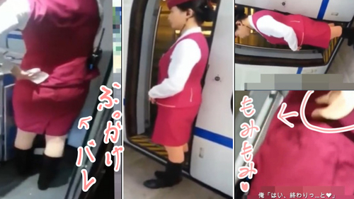 自分でぶっかけたその美人な乗務員さんに