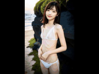 薄手の純白のビキニは肌にぴっちりと密着し、ツンと尖った乳首の形が、隠しきれずくっきりと浮き出ている。