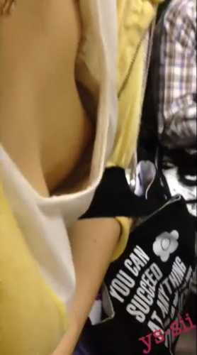 電車でかわいい乳首を盗撮♡
