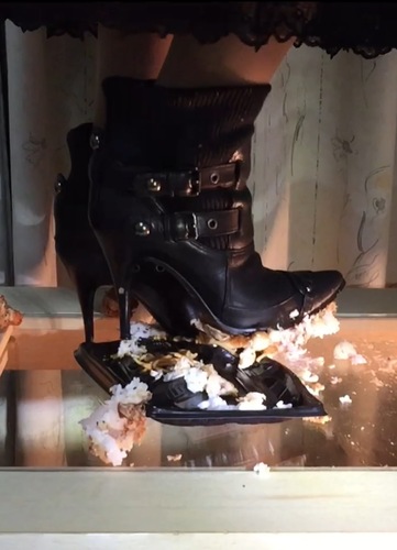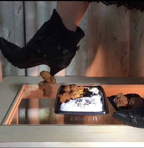 幸子女王様‼️が唐揚げ弁当の唐揚げをお気に入りのブーツで串刺し(両足)にしたり、幸子女王様が履かれているストッキングもセクシーに見えて素敵です。