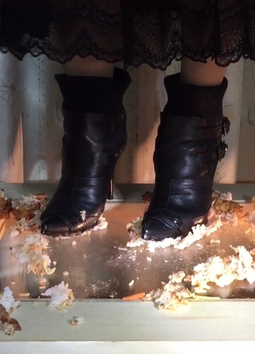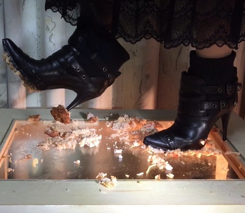 唐揚げ弁当をお気に入りのタンクソール(ヒール)のブーツ、SEVEN TWELVE THIRTY ショートブーツで唐揚げ弁当をクラッシュして頂きました。