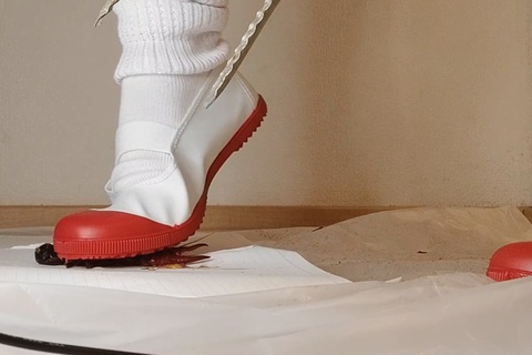 またまた素晴らしい動画を頂きました、こんどは制服にかわいらしい上履きで踏み潰しています。