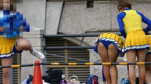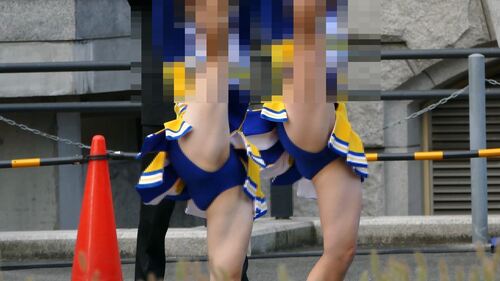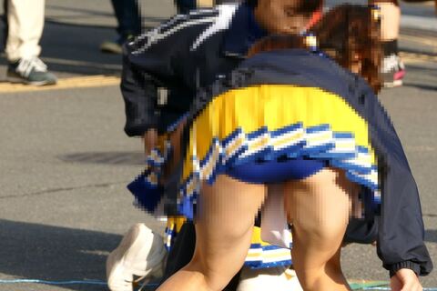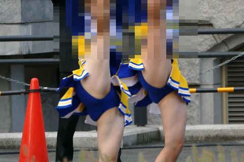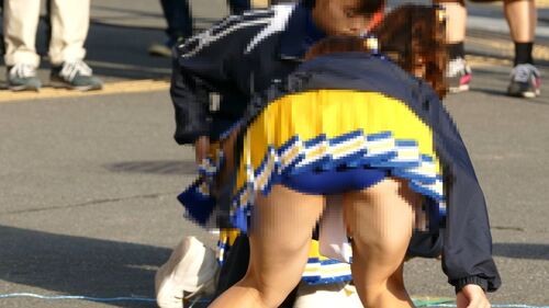 しゃがみ座りでΔゾーンが丸見えチアも!