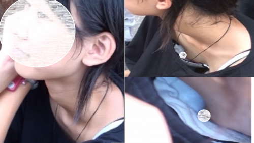 いわゆる義務教育的な年頃の胸元パカパカ女子発見。