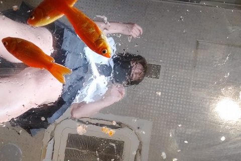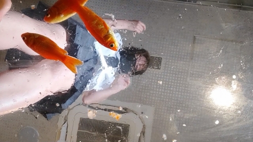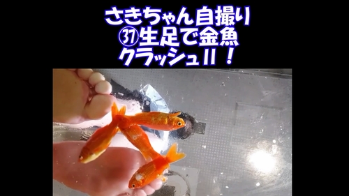 またまた貴重な生足金魚編新作です、4匹を並べ、体重をかけて潰そうとしますが、うろこがヌメヌメしてすぐに足に裏から離れてしまうので難しそうです。