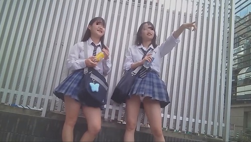 ガチ風の制服JK2人組を同時パンチラ盗撮!