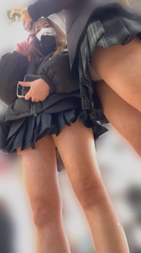 ギャル系JK2人組を同時に逆さパンチラ盗撮!