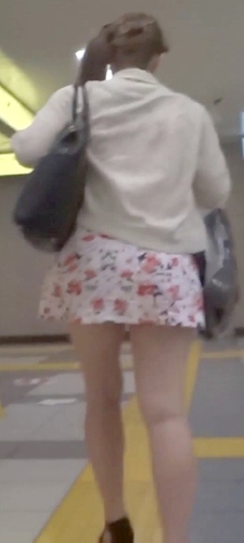 彼女はすごいミニスカートを履いていたのですが、電車の中ではスカートの中を撮るチャンスがなかったので彼女が電車を降りるまで待つことにしました。