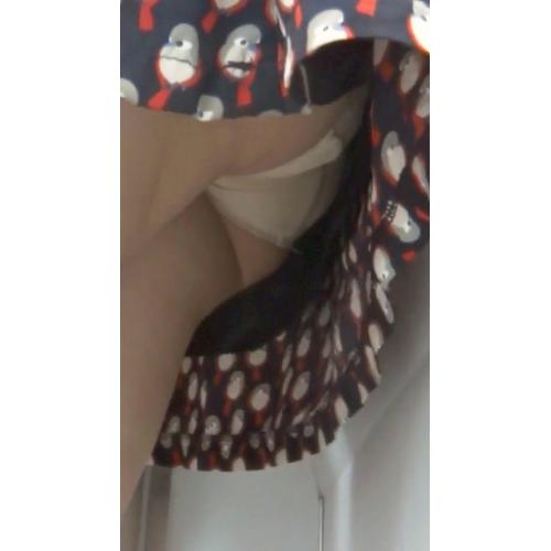 彼女が電車を降りたところでスキを見てスカートの中を狙おうと思っていましたが、抑えきれずに電車内で狙うことにしました。カメラの電源を入れ、撮影を開始します。そしてこっそりと彼女に近づき、スカートの中へカメラを差し込んでいきました。電車内での撮影はバレる危険がありましたがどうやら大丈夫そうです。そして撮影がバレていないと確信したところで思い切ってスカートの奥へカメラを突っ込みます。そのまま長々とパンツを撮ってやりました。