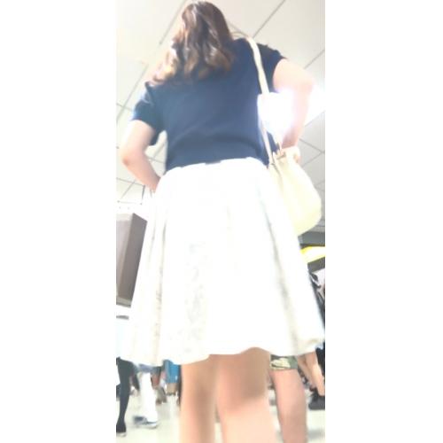 彼女は白のミドル丈のスカートを履いていました。普通にはパンツが見えそうもないスカート丈ですが、上り階段か上りエスカレーターであれば背後からスカート中を狙えそうです。そこで撮影しつつ彼女を追いかけ、スカートの中を狙うタイミングを伺います。